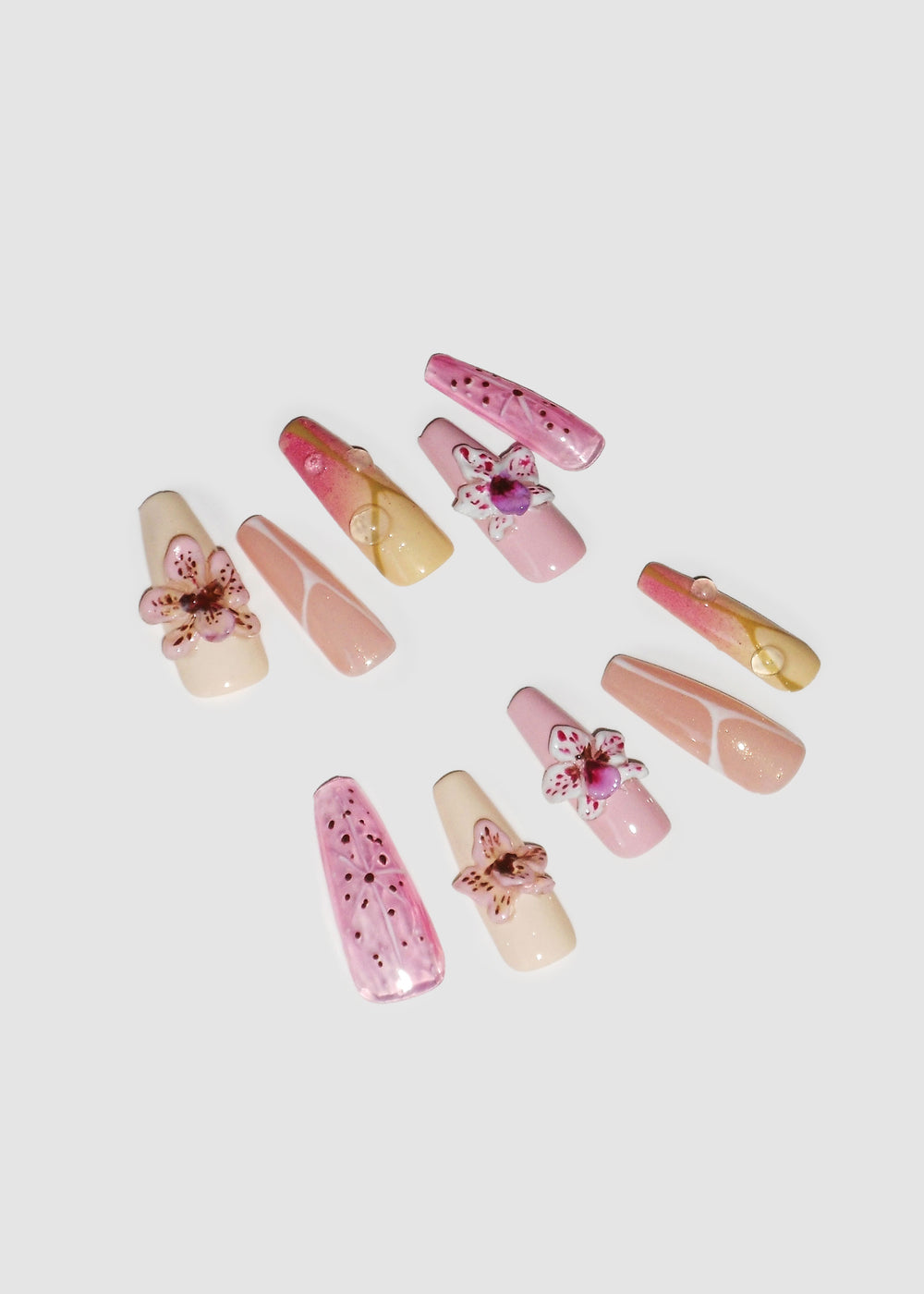 These alluring Cherry Blossom press-on nails feature exquisite handpainted work on a glossy finish. Show off your sense of style with these beautiful blossom nails crafted from quality materials.